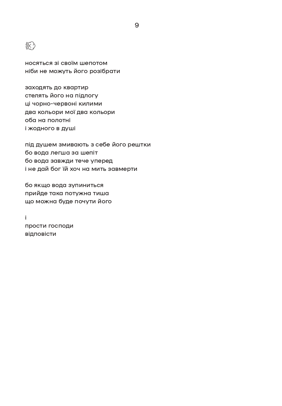 Тексти авторки і тексти автора розташовані почергово, щоб читачі рівномірно бачили тему з двох протилежних точок зору. Вірші, які не мають текстової назви, отримали назви-емодзі: давні теми та сучасні ієрогліфи створюють контраст, який додатково підштовхує до рефлексії.