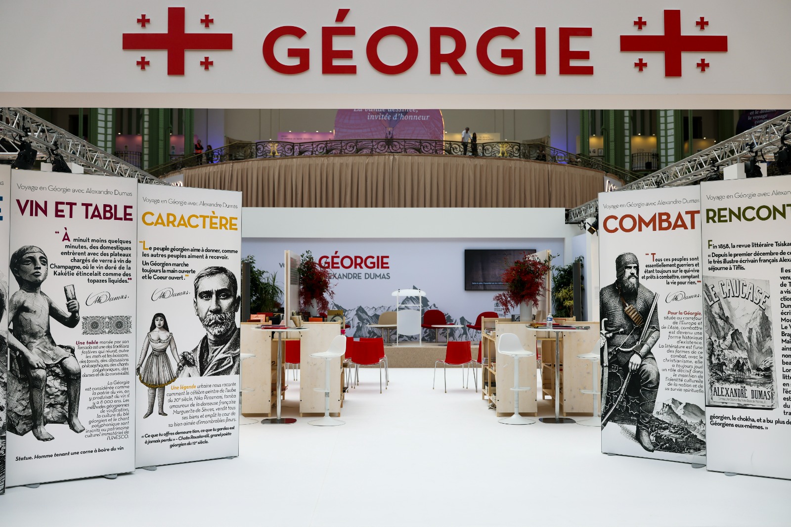 «Концепцію національного стенду побудовано за мотивами книжки відомого французького письменника Александра Дюма “Подорож на Кавказ”. Стенд покликаний допомогти відвідувачам відкрити для себе картвельську літературу та культуру. Під гаслом “Подорожуй Сакартвело разом з Александром Дюма” програма стенду охоплює сучасну й класичну літературу, кінопокази, дитячі заходи, музичні вечори та кулінарні презентації», — написали в установі.