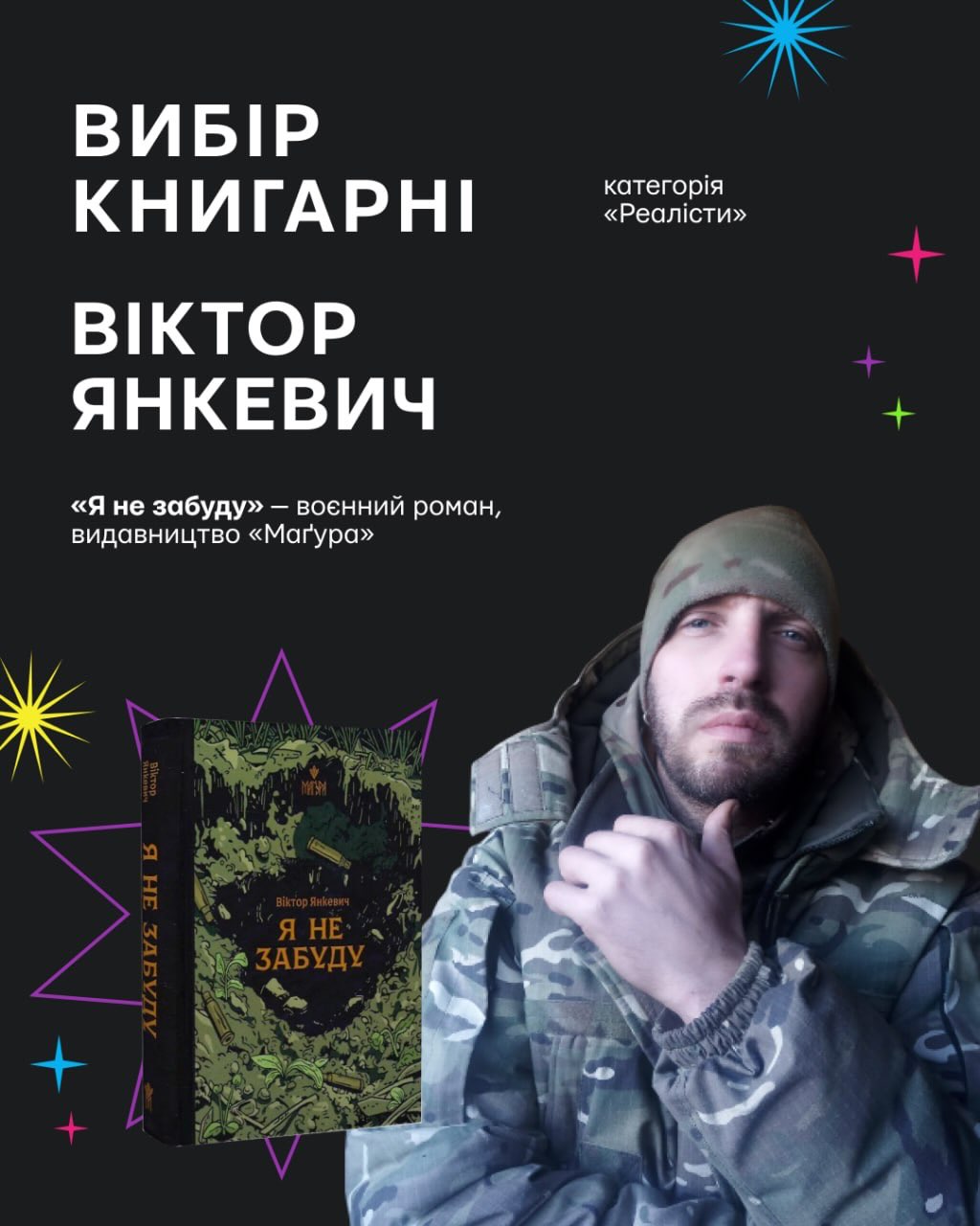 - у категорії «Реалісти»: Віктор Янкевич із воєнним романом «Я не забуду»;