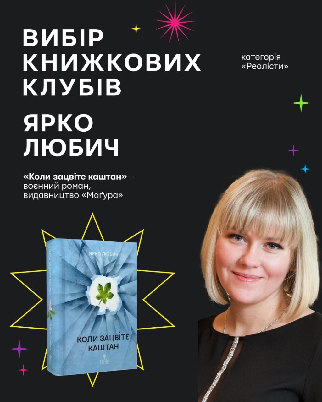 - у категорії «Реалісти» переміг Ярко Любич із книгою «Коли зацвіте каштан»;