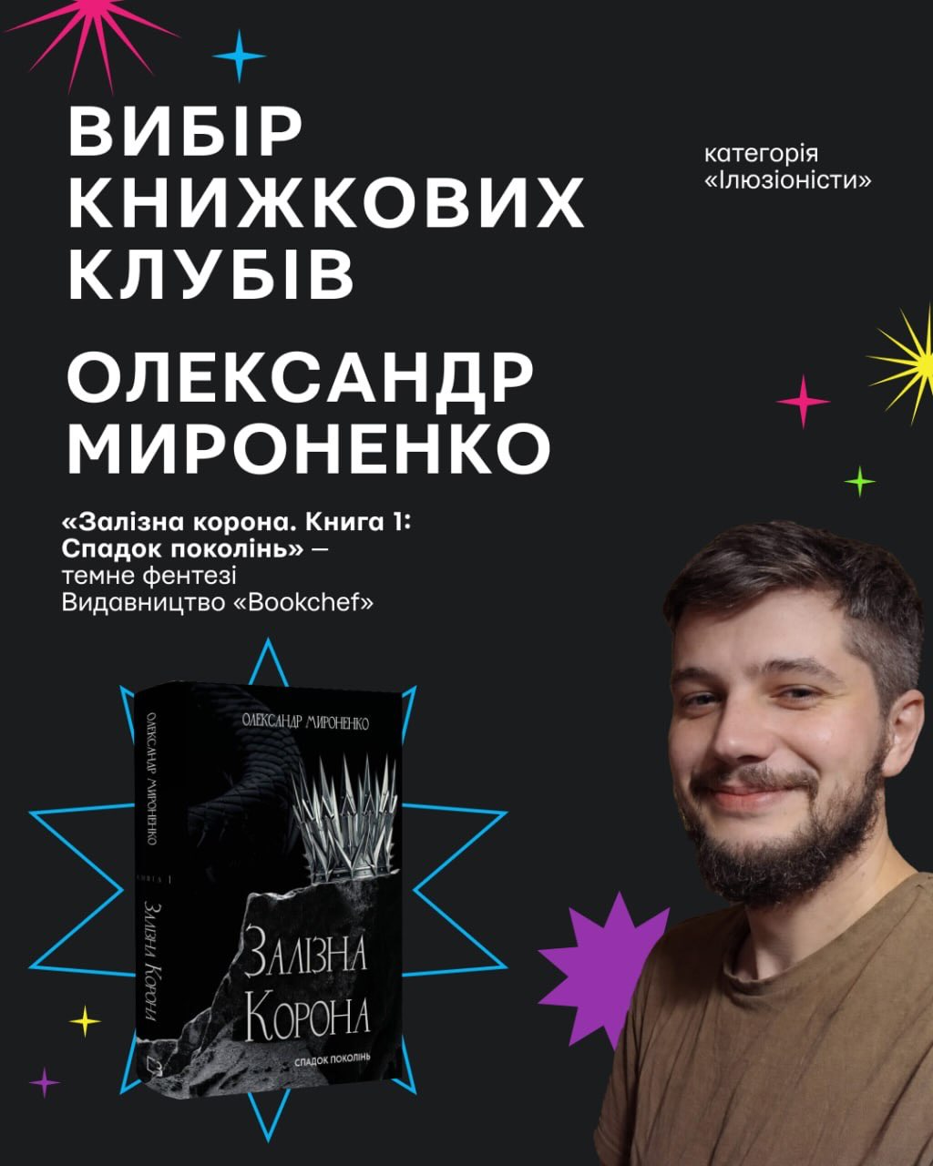 - у категорії «Ілюзіоністи» переміг Олександр Мироненко з романом «Залізна корона. Книга 1: Спадок поколінь».
