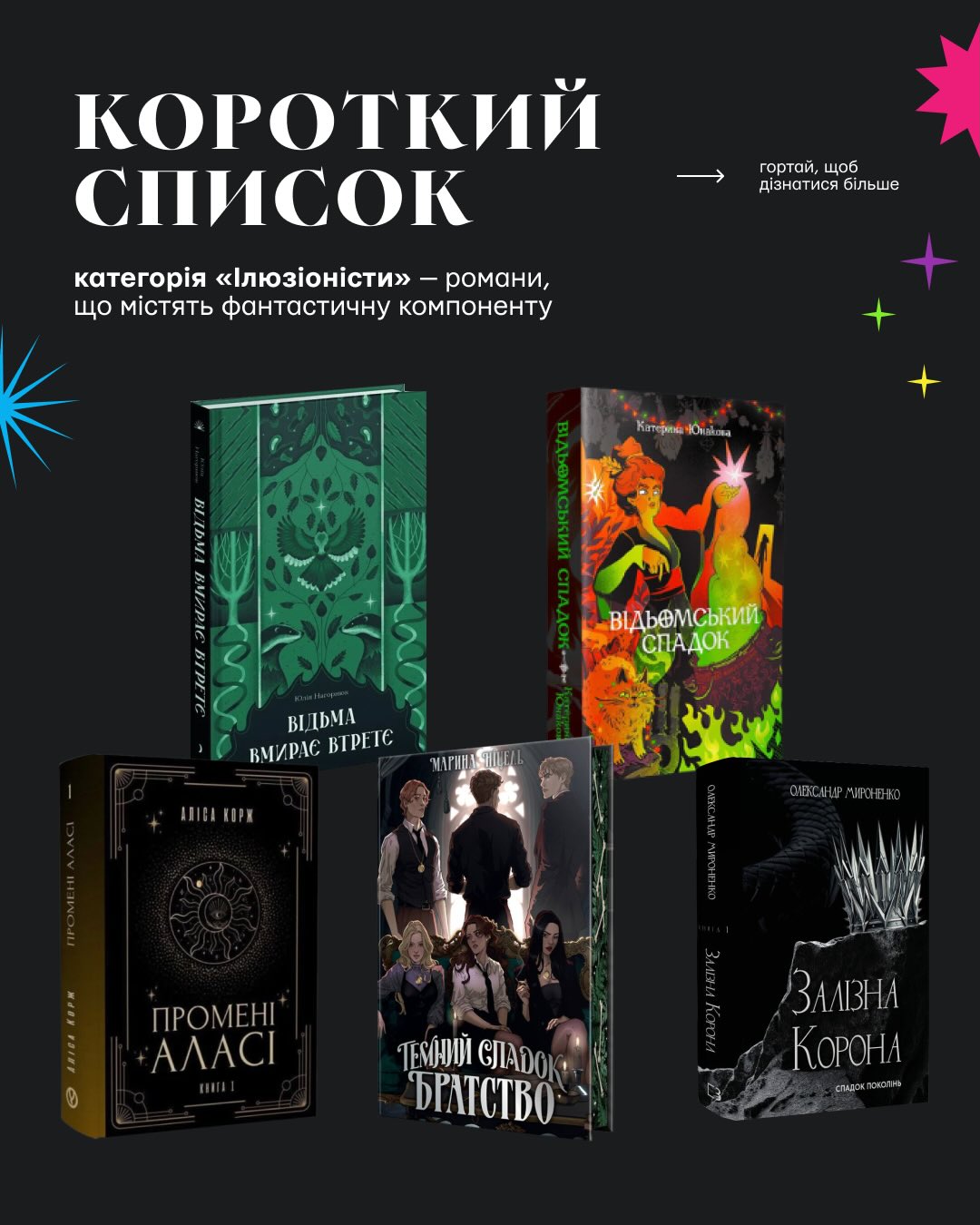 - Юлія Нагорнюк, «Відьма вмирає втретє» (видавництво «Ще одну сторінку»);