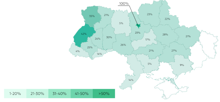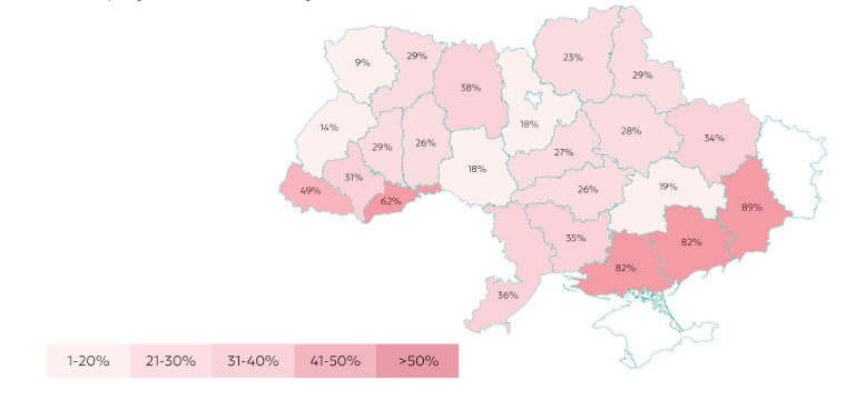 Для опитування інститут у лютому 2026 року надіслав запити до 1268 територіальних громад, де немає бойових дій, і отримав 1002 відповіді. Це 79% охоплення — більше, ніж у 2025-му, коли показник становив 75%. Відповіді надійшли з усіх підконтрольних регіонів, від міських, селищних і сільських громад, а в кожній області охоплення склало не менш як 71%, тож УІК вважає результати репрезентативними для всієї країни.