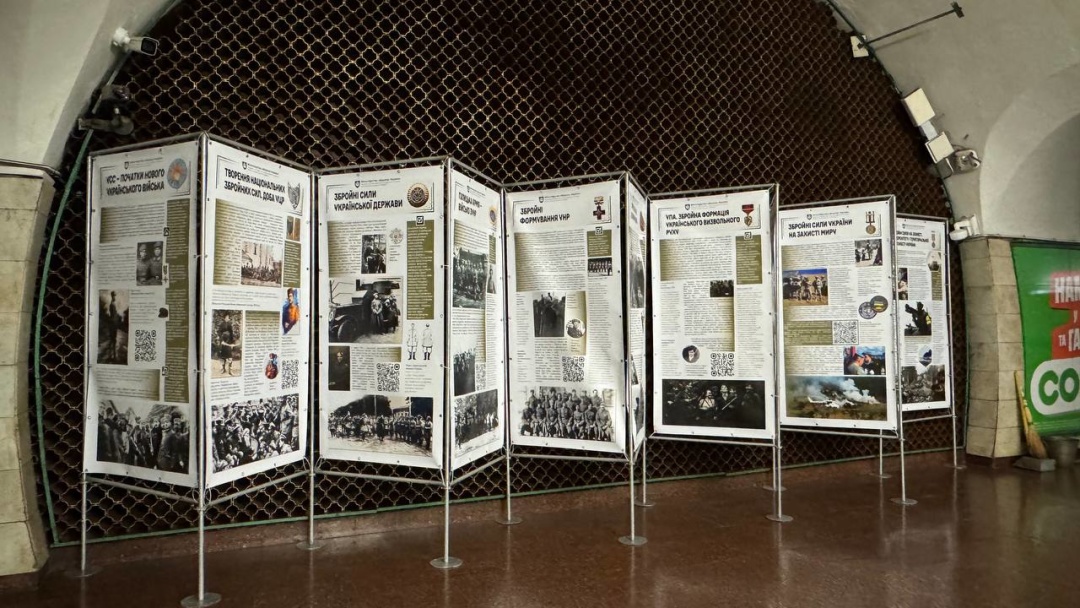 У День захисників і захисниць України на двох станціях столичного метро запрацювали виставки, присвячені історії українського війська та сучасним оборонцям країни.